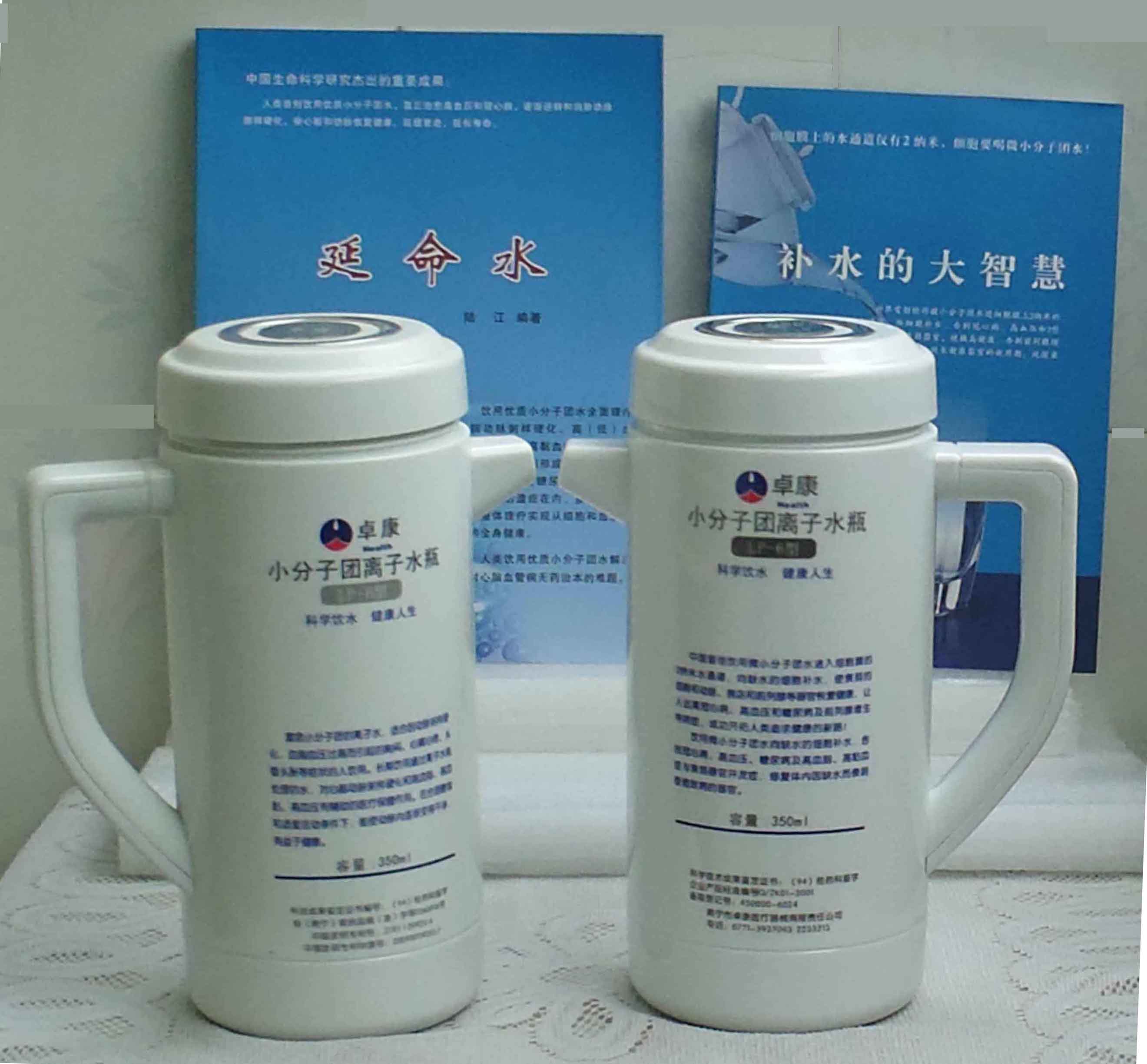 本品大量用戶的使用效果表明,能治愈冠心病、腦動(dòng)脈硬化、原發(fā)性高(低)血壓、高血脂、高粘血癥、高血尿酸癥(痛風(fēng))和2型糖尿病、衰弱器官并發(fā)癥(前列腺增生、腎衰與尿毒癥)及中風(fēng)后遺癥等療效好。產(chǎn)品配信譽(yù)卡。使用壽命30年,不換芯,易清洗。團(tuán)購優(yōu)惠。從郵局匯款,匯費(fèi)1%,地址按本頁下方地址、聯(lián)系人寫。從銀行匯款,請(qǐng)點(diǎn)擊[聯(lián)系匯款]欄,從工商銀行匯款,建設(shè)銀行、農(nóng)業(yè)銀行匯款,均免收匯費(fèi),匯款后20--30分鐘內(nèi)發(fā)短信,可用微信轉(zhuǎn)帳,均免匯費(fèi),微信號(hào)即手機(jī)號(hào)13768308380。匯款后,告知你的姓名和地址,我公司聯(lián)系人手機(jī)號(hào)是:13768308380卓康牌離子水瓶為我公司獨(dú)家生產(chǎn),郵購產(chǎn)品配《補(bǔ)水的大智慧》彩印書一本,另配四季出版社出版的新書《補(bǔ)水的大智慧》一本,并配光盤一張(含央視主持人釆訪陸江的對(duì)話視頻)。目前市場(chǎng)和"淘寶網(wǎng)"上有人兜售假冒的偽品,望讀者審察辯別真?zhèn)危旒僬哓飧`假冒本公司的各種認(rèn)證、獲獎(jiǎng)獎(jiǎng)項(xiàng)、專利號(hào)和外包裝盒上的中英文字,包括科技成果的鑒定意見等,請(qǐng)讀者注意防偽。如何識(shí)別假貨?已經(jīng)買了假貨怎么辦?(請(qǐng)點(diǎn)擊[打假掠影][打假掠影])。